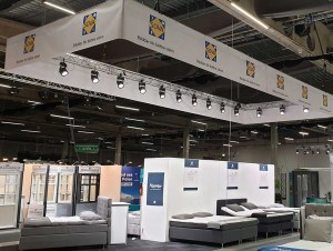 A plain pvc banner with either velcro or keder list. Velcro version will be attached to the wall using velcro. It´s only suitable for wooden walls, can be re-used. Keder version is used when hanging a banner from the ceiling. Price per m²