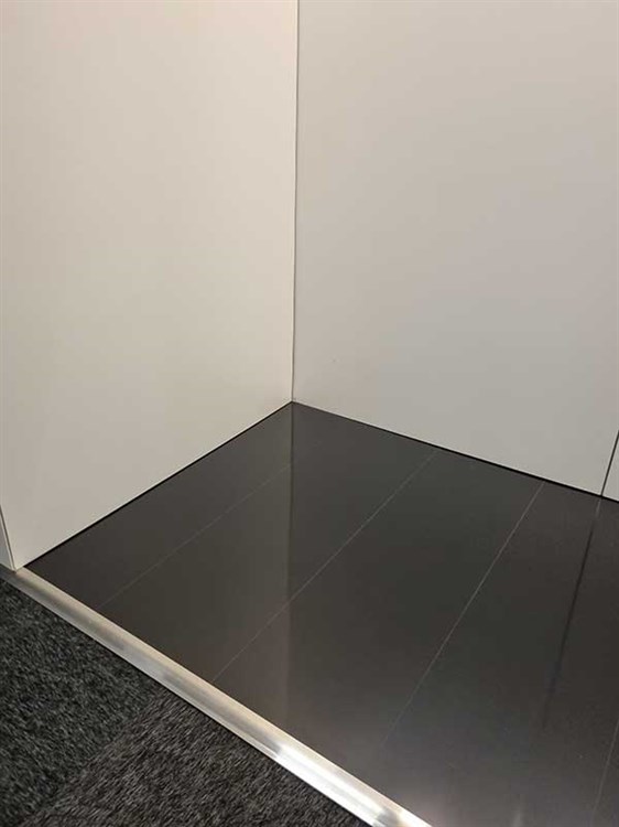 Golv, högblankt, svart, inklusive kantlist. Pris per kvm.