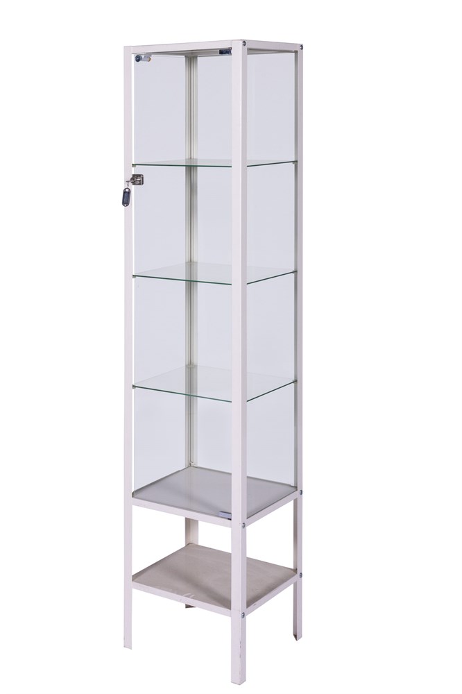 Vitrinskåp med 3 hyllplan i härdat glas (ej belyst), 40x34x175cm (LxBxH)