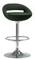 Barstol med svart skinnsits, fotring och kromat underrede, 63-88cm (sitthöjd)
