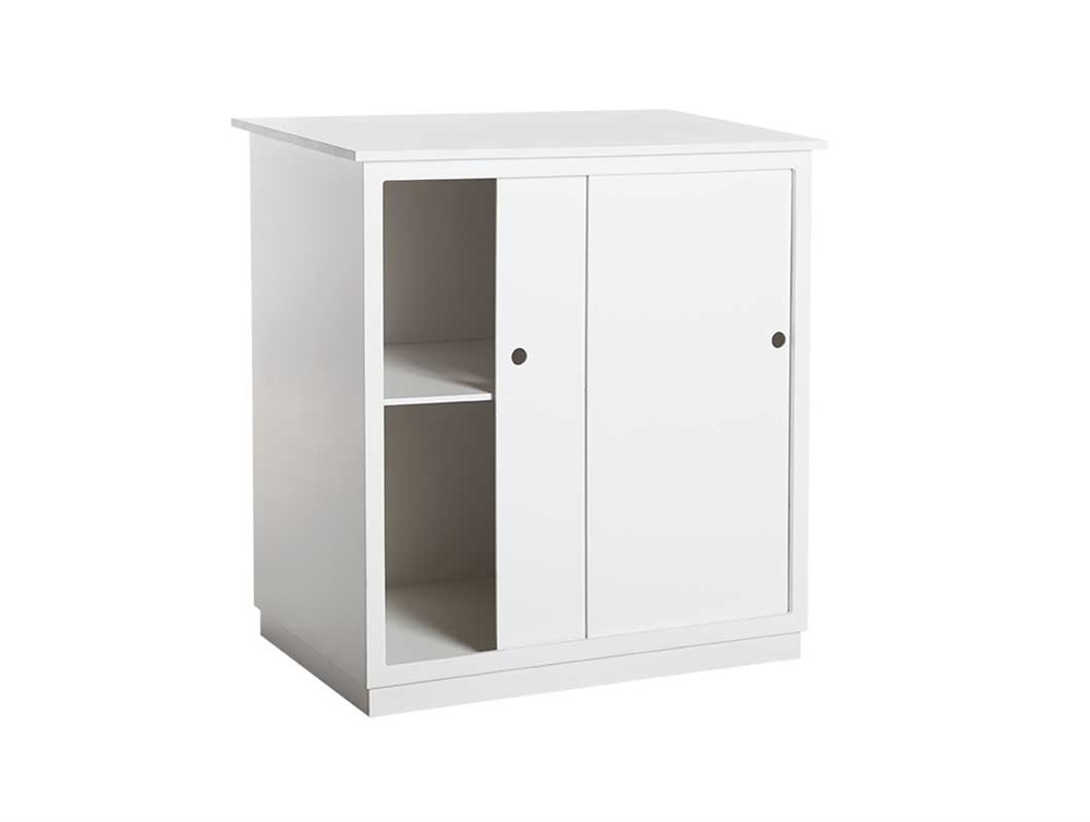 Skåp GAMMA, 1050x550x1100mm, vit. Baksida med hyllplan och skjutdörrar, ej låsbart