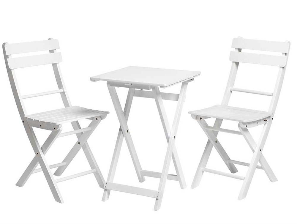 Cafégrupp, Vinga. Ett bord och två stolar. Bordsstorlek 45x45x68cm, vitt