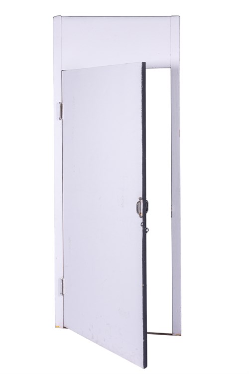 Vitmålad dörrmodul i mässvägg, 100x3,5x250cm (BxDxH). OBS! Lås ingår ej