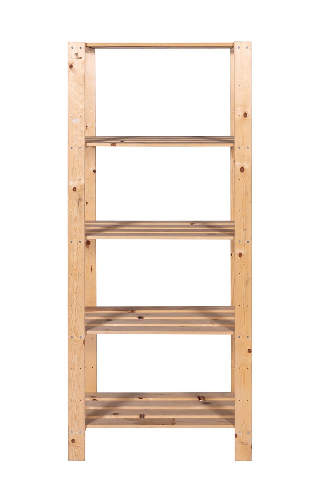 Lagerhylla i trä med 4 hyllplan, 78x34x174cm (LxBxH)