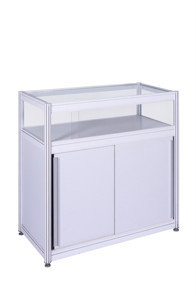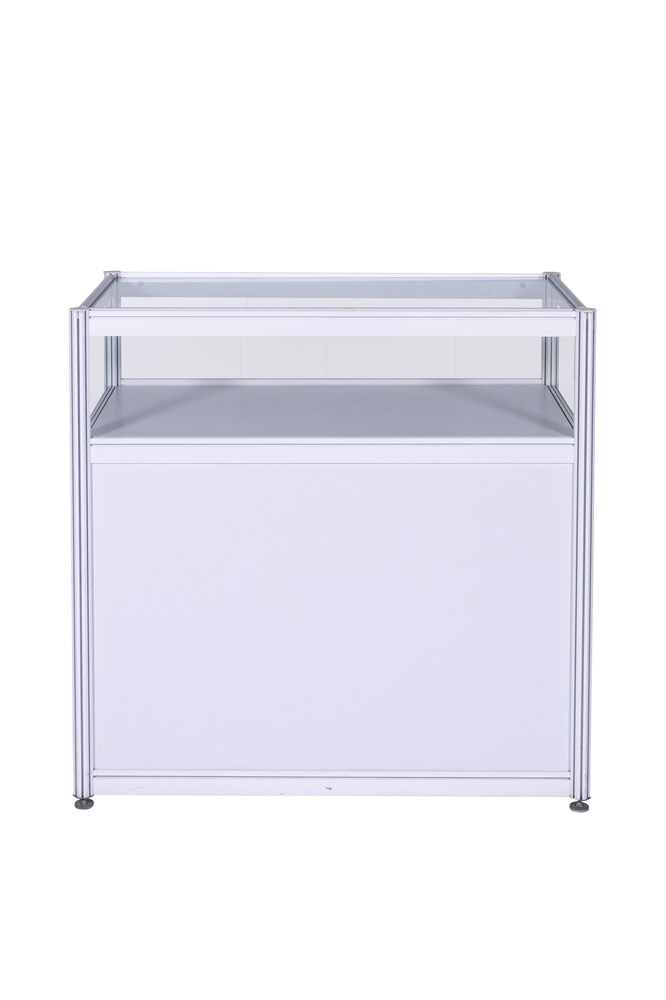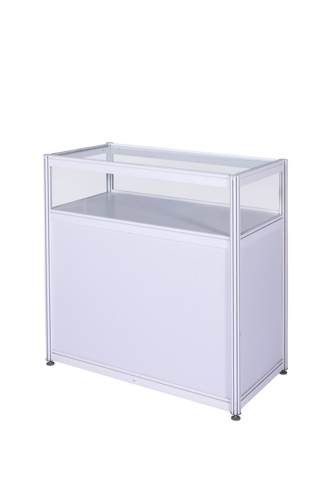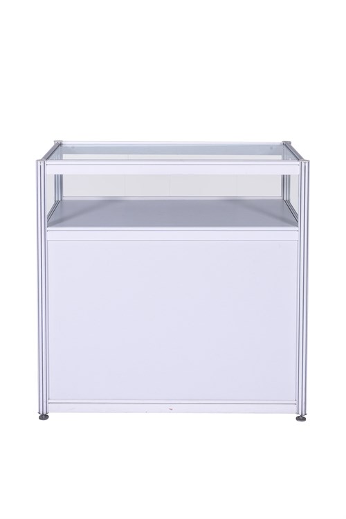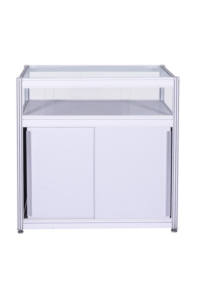 Glasdisk i vitt och glas, 100x50x100cm (LxBxH)