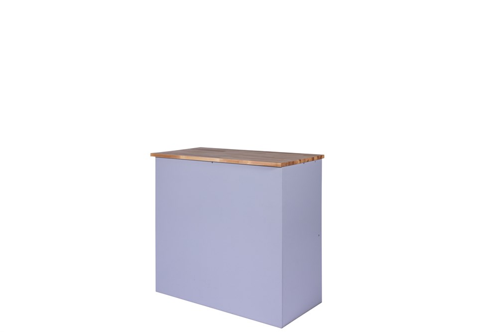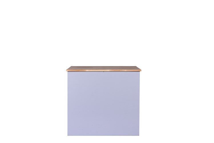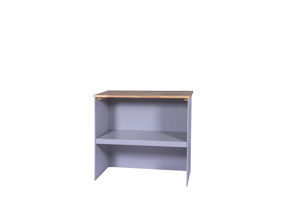 Disk i ljusgrått trä med toppskiva i oljad bok, 126x60x112cm (LxBxH)